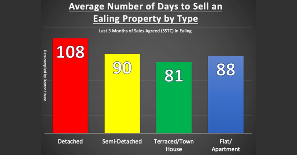 A few weeks ago, I stated that of the Ealing properties that have sold subject to contract (stc) in the three months of Dec, Jan & Feb, it took an average of 95 days to sell.