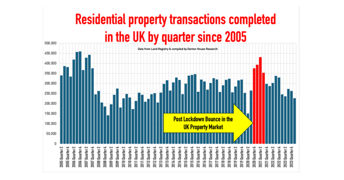 To give you an idea of the numbers, the average number of UK homes sold (including new homes) since 2005 has been 1,169,864 per year (or 292,466 per quarter). Yet, the average quarterly number of UK house sales in the 12 months between Oct 2020 and Sept 2021 was considerably more at 1,553,860 (or 388,465 per quarter).