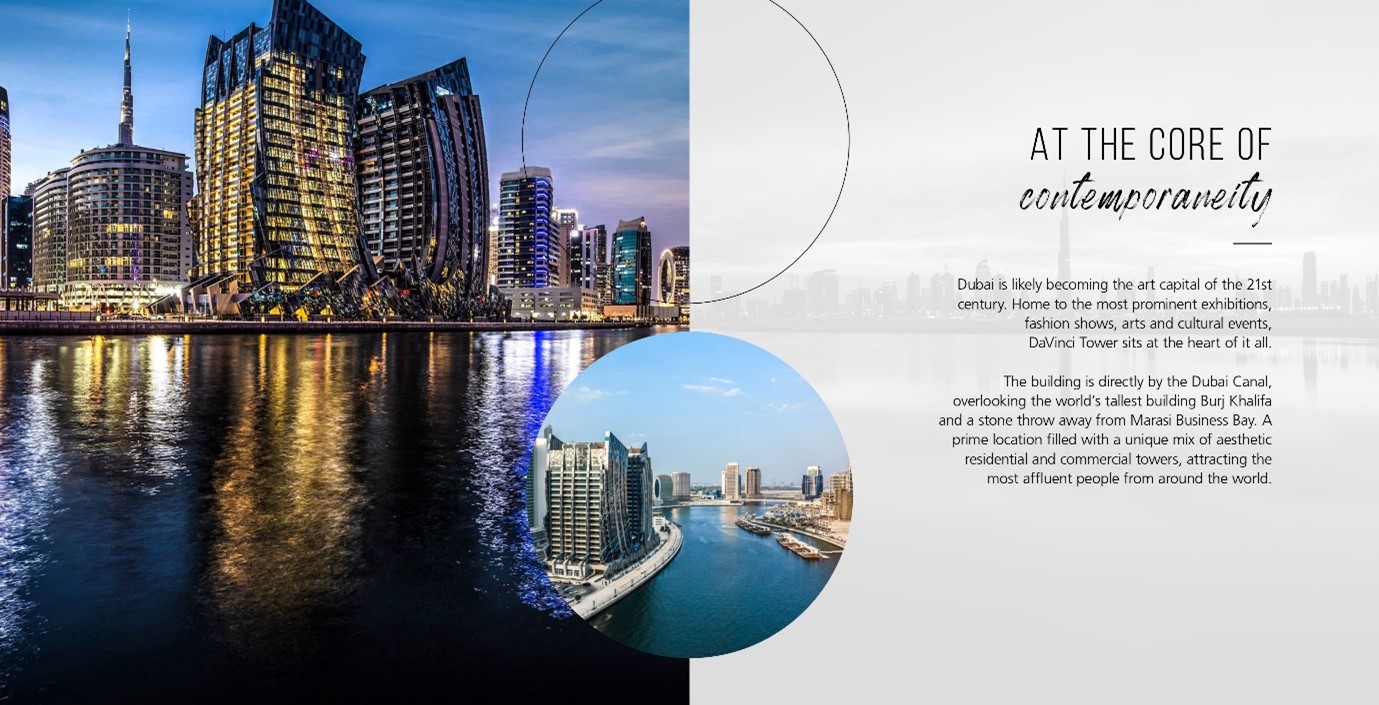 The building sits in a strategic location, letting you enjoy the best of Dubai’s panoramas. On the south-east side you can indulge in the soothing views of the water, the canal, the floating villas and Business bay. On the north side, Burj Khalifa stands just outside of your window.
