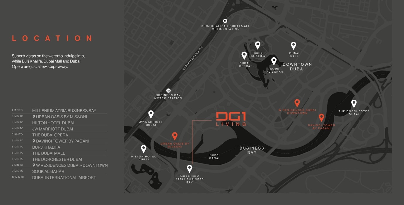 DG1 is located in the heart of Business Bay directly on Dubai Canal, where stunning views and an unbelievable proximity to all that matters truly embody the vibrant soul of the city.